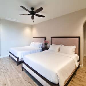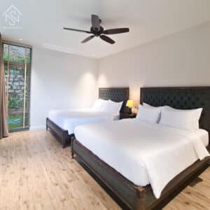 ✓ Phòng ngủ: Máy lạnh, quạt trần, chăn ga gối nệm tiêu chuẩn 4 sao ( 6 PN trong đó 2 phòng đôi 2 *giường 1.6*2m, 4 phòng giường 1.8*2m),