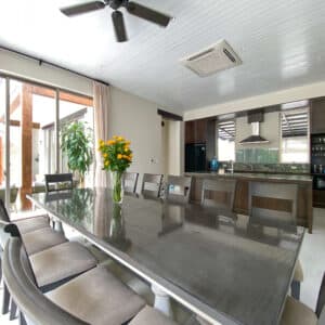✓ Bếp: Bếp từ, Hút mùi, Máy rửa chén, Máy lạnh độc lập, các thiết bị điện tử thông dụng, dụng cụ nấu ăn + đồ dùng ăn uống, bàn ăn 12 chỗ.